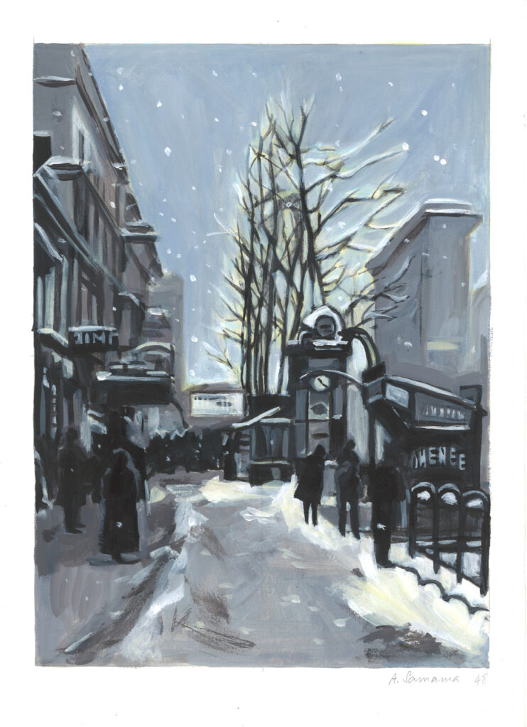 Aude Samama – A l’ombre de la gloire p. 50 (réservé) Posted on 7 janvier 202610 janvier 2026 Aude Samama – Expo Aude Samama et Grégory MardonPlanche originale à l’acrylique– Dimensions : 42 x 30 cm– Prix : 650€