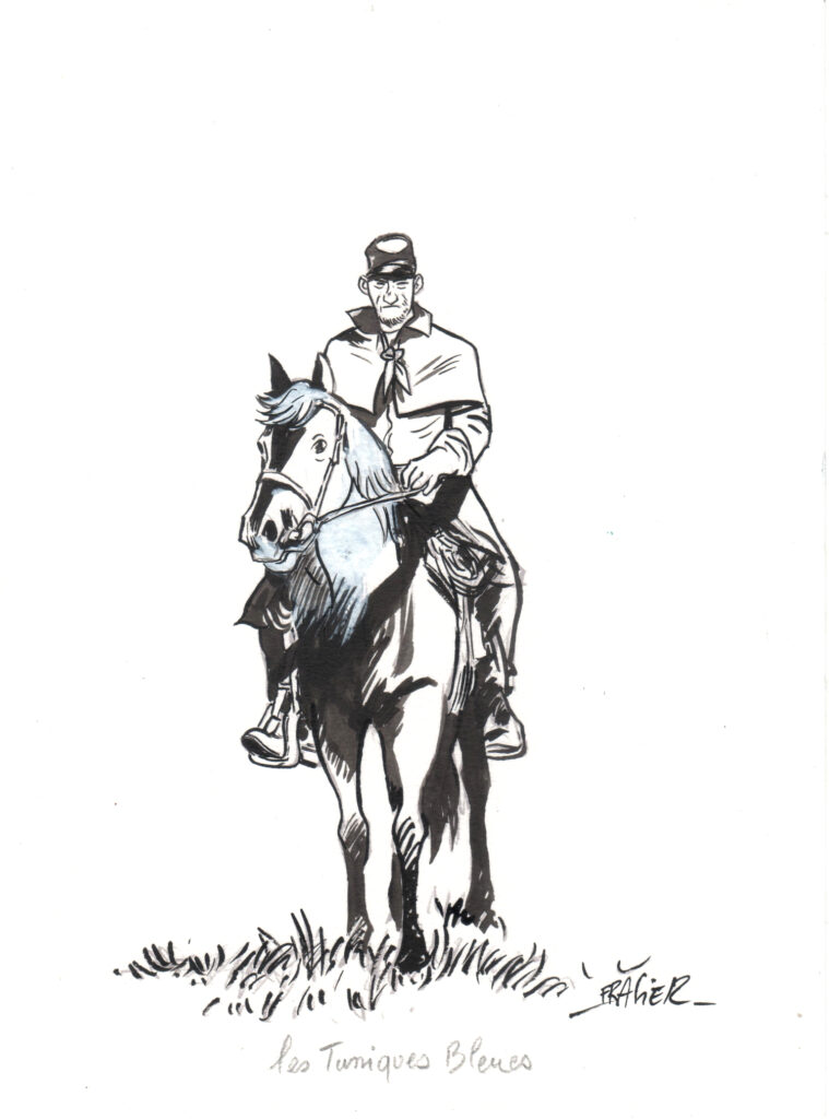 Olivier Frasier. Les tuniques bleues 01 (vendu) Posted on 23 mars 202623 mars 2026 Olivier Frasier – Expo Olivier Frasier et Tieko Recherche persos à l’encre– Prix : 120€– Format : 28,5 x 21 cm